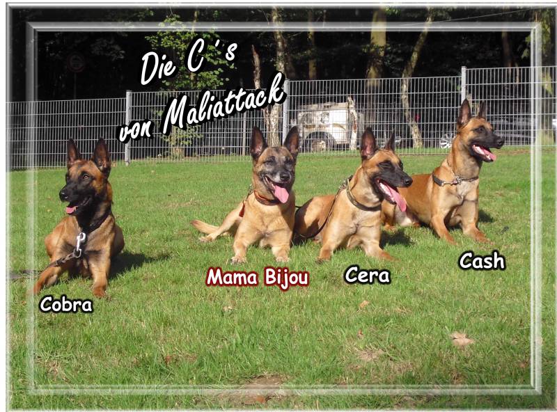 (Anthrax vom Zabelstein x Bijou avec esprit, WT 14.06.09) Auf dieser Seite findet Ihr Infos und Ausbildungsstand unseres C-Wurfes. Auch diese Seite lebt natürlich vom Mitmachen! Also schickt mir fleißig Fotos oder Videomaterial Eurer kleinen Maliattacks! Wir freuen uns über jede noch so kleine Nachricht ! Infos zu den einzelnen Hunden bekommt Ihr, beim anklicken des jeweiligen Baby-Fotos! Der aktuelle Ausbildungsstand wird
