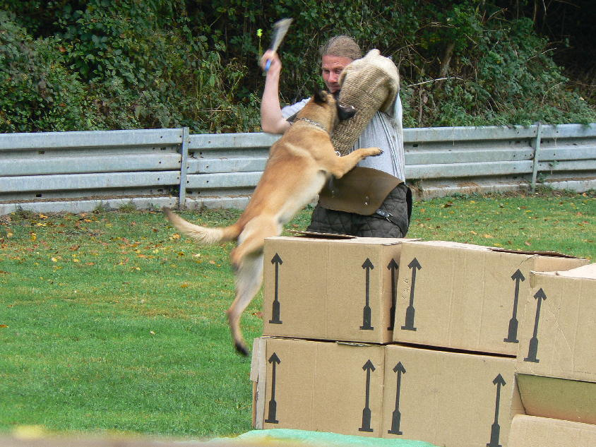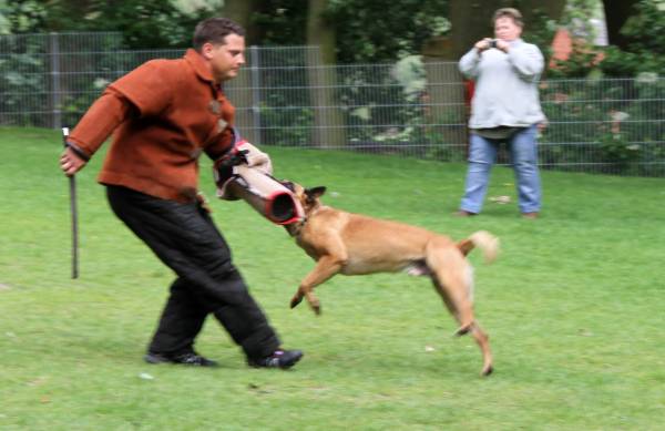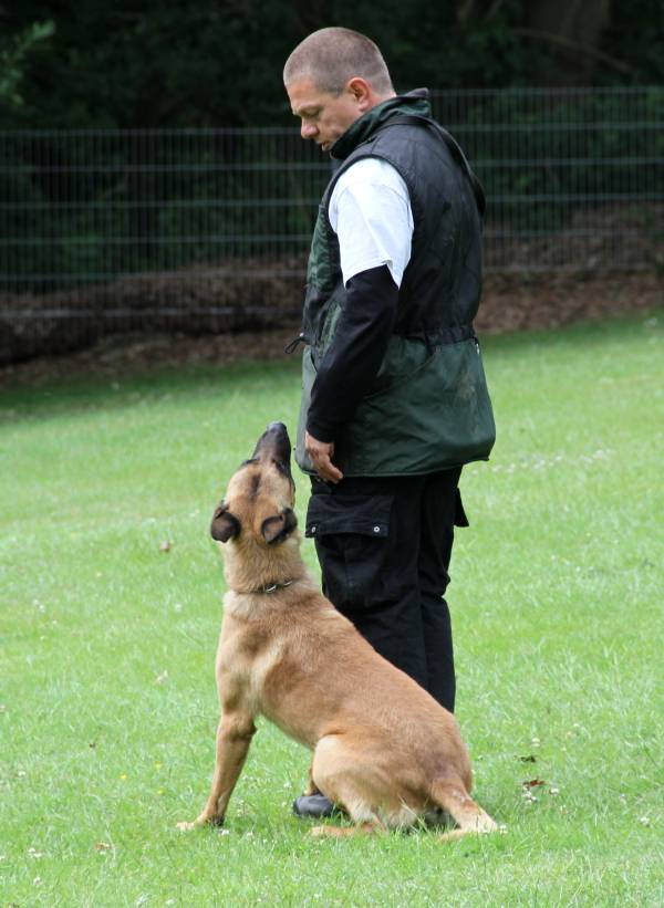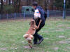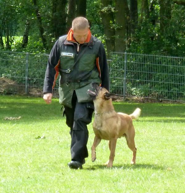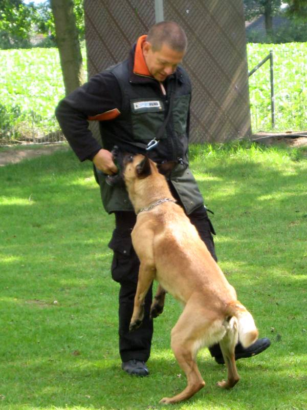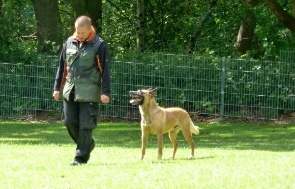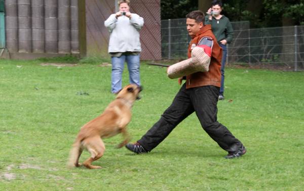 Anlässlich eines Unterordnungs-Seminares im GHSV Ratheim, hatten wir das große Glück, Aragon nach 3 Jahren auch noch einmal wider zu treffen und durften ihn sogar beim Schutzdienst in Action sehen! Wir haben Arag als einen sehr ausgeglichenen und ausgesprochen freundlichen jungen Rüden kennen gelernt. Er ist kompakt von mittlerer Größe und sieht seiner Mama sehr ähnlich. Ein echter Sportler eben! In der Abt. C strahlt er absolute Selbstsicherheit aus und zeigt sehr harte, volle und ruhige Griffe gepaart mit einer sehr guten Führigkeit. Wir freuen uns, dass Aragon so ein tolles Zuhause gefunden hat und möchten uns für eine super Welpenprägung-, Aufzucht und Ausbildung ganz herzlich bedanken! Leider ist dies nicht immer selbstverständlich, um so mehr freuen wir uns, dass Arag und Dirk so ein tolles Team sind! Wir wünschen Euch für die nächste Landesmeisterschaft ganz viel Glück und Erfolg!