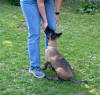 Allgemeine Entwicklung ; Cat ist 9 Monate Cat hat sich in den letzten Wochen sehr gemausert. In allen Abteilungen zeigt sie sehr viel Arbeitseifer, begreift Übungen schnell und ist sehr bemüht immer alles richtig zu machen. Neue Anforderungen findet sie toll! Sie scheint wirklich darüber nach zu denken, was sie tun kann, um zu gefallen. Daher kommen wir beim Training schnell voran. Cat macht alle erlernten Übungen sehr freudig und arbeitet sehr konzentriert. Sie zeigt mir nahezu ausnahmslose Aufmerksamkeit, sodass es sehr viel Spaß macht mit ihr zu arbeiten. Auch in der Abteilung C zeigt Cat jetzt sehr viel Energie zum Helfer und entwickelt sehr gutes Beuteverhalten, bei vollen und ruhigen Griffen. Belastungen hält sie stand und zeigt eine sehr hohe Anbissgeschwindigkeit. Momentan macht sie einfach ganz viel Spaß!