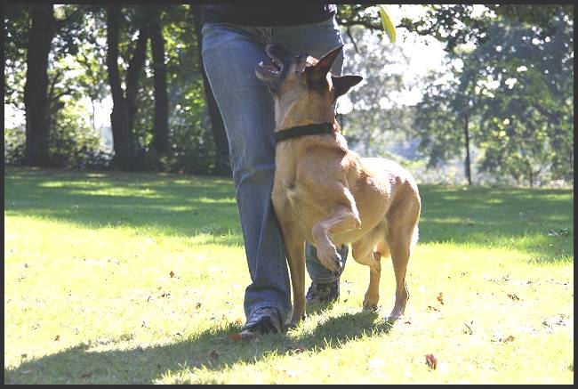 "Bijou" besticht durch sehr gutes Lernvermögen. Sie arbeitet stets freudig und triebvoll. Ihr überdurchschnittlich ausgeprägtes Beuteverhalten macht es sehr leicht die Hündin zu motivieren. Sie trägt den ganzen Tag Ball oder Beißrolle, wenn sie kann und bietet diese dann auch selbstständig zum gemeinsamen Spiel an. Man kann sagen, ein Hund der von Natur aus ständig seinen Hundeführer fordert und den ganzen Tag über "brennt".