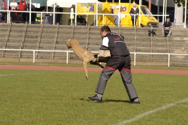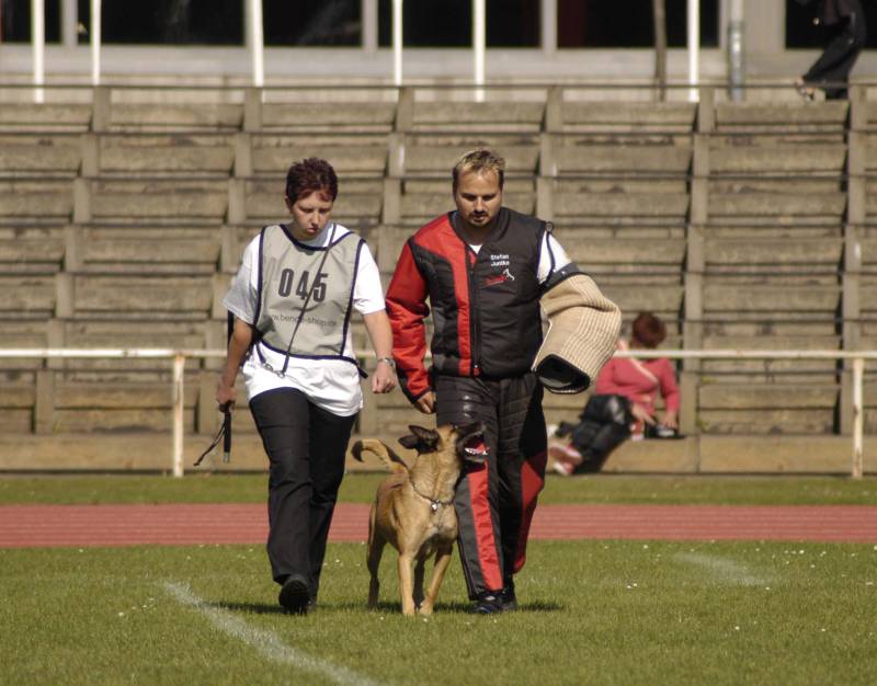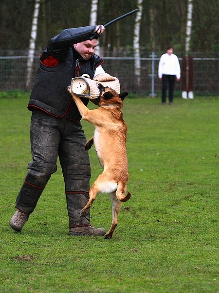 Die Griffe sind hart und immer voll. Auch in der Abt C zeigt die Hündin eine hervorragende Lernbereitschaft und Führigkeit. Bijou arbeitet in den Kampfhandlungen sowie auch in den Bewachungsphasen sehr sicher und ist höchst belastbar. Triebwechsel von Beute auf Wehrarbeit werden schnell umgesetzt. Bijous Einsätze sind immer extrem energisch und druckvoll. Die Flucht des Scheintäters verhindert sie