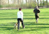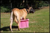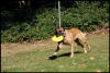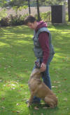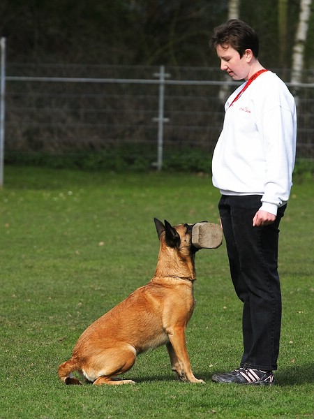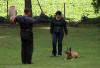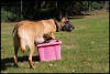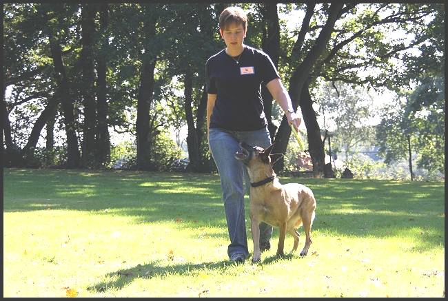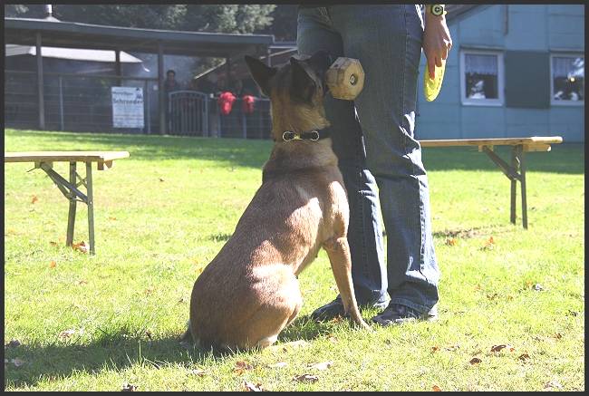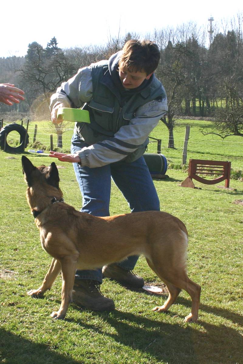erst beide Füße in die Kiste stellen und dann auf Kommando schnell von einer in die andere wechseln und nach dem Click gibt´s wieder den Frisbee! (Fotos by Simone Ueding) Bilder vom Lind-art-Seminar Einstudieren des "geistigen Zügels" (Fotos by Sandra Hochscheidt) Bilder aus Training und Prüfung
