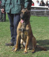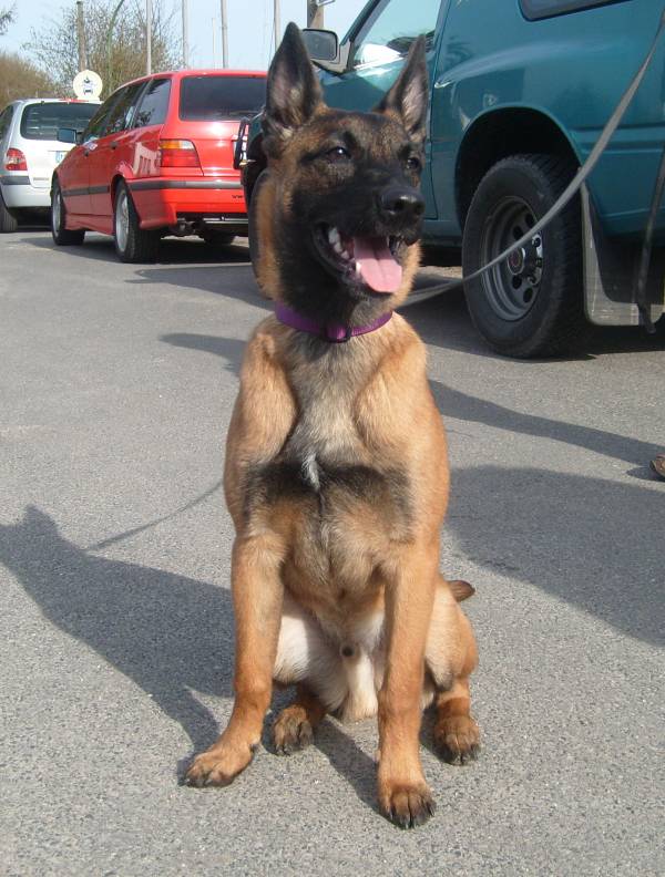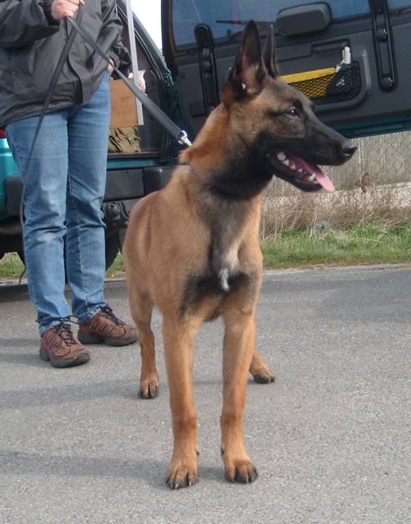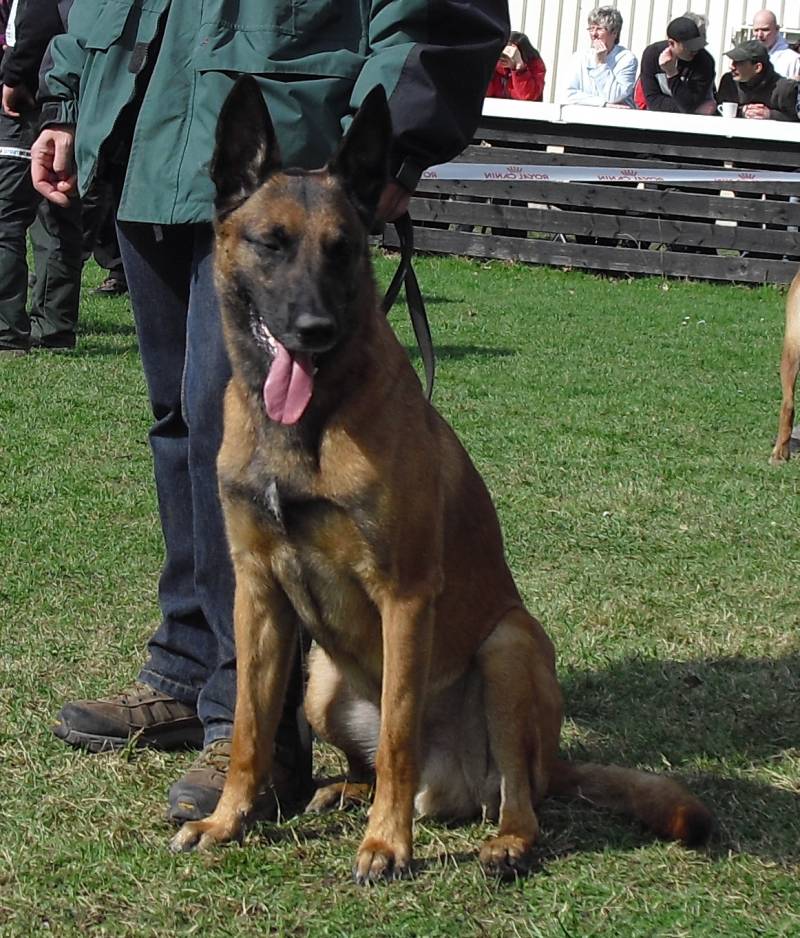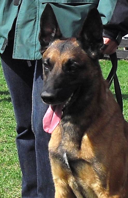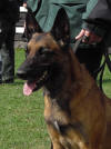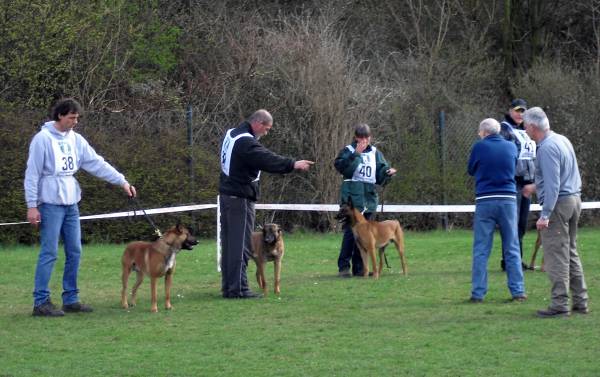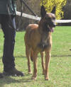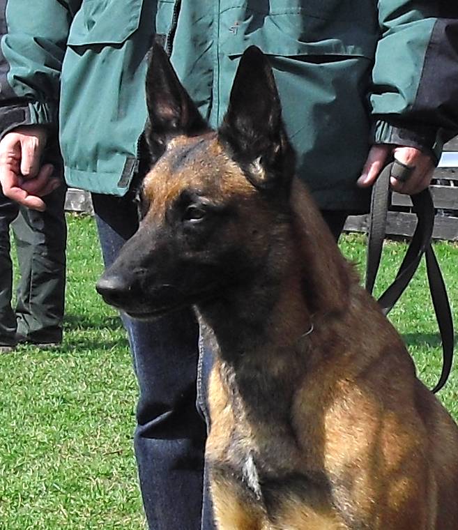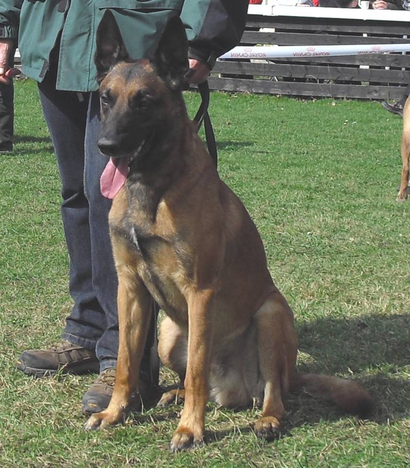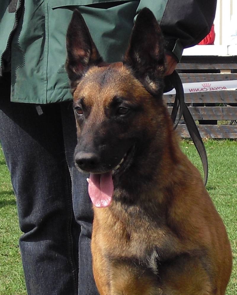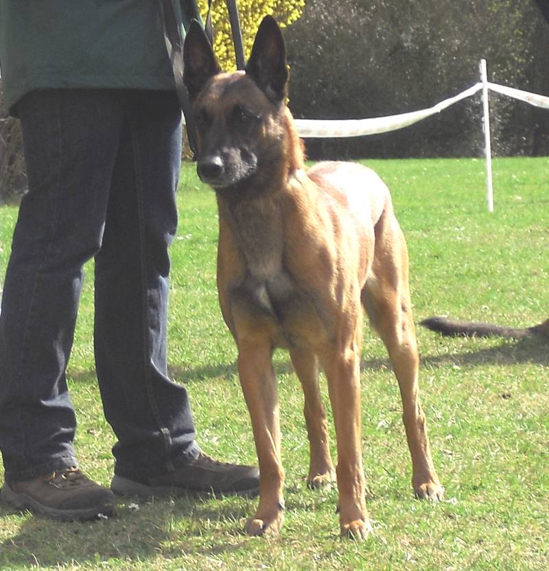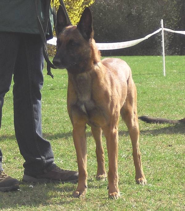 Brigant erhielt auf der Schau DMC in Düsseldorf Wersten ein Sehr gut ! Schaubericht : 2 1/2 jähriger Rüde mit knappen Scherengebiss, gute Kopflinien, guter Stop, mittelbraune Augen, schräg eingesetzt, mandelförmig, schöne flache Backen, schöne Halsnackenlinie, der Rüde ist leicht überbaut, Brustbreite und -tiefe korrekt, gute Winkelungen vorne und hinten, korrekter Stand, in der Bewegung gut ausgreifend mit Schub. Düsseldorf/NRW 27. März 2010 Richter Alfred Klapproth Wir gratulieren ihm und seiner Hundeführerin Ulla Hagen ganz herzlich und möchten Euch bei dieser Gelegenheit ein ganz liebes Dankeschön schicken! Brigant ist sehr frei und umgänglich, er zeigt sich ausgesprochen selbstsicher und freundlich. Anatomisch ist er sehr derbe und muskulös und besitzt eine wunderschöne, dunkelrote Farbe. Brigant ist ein sehr temperament- und drangvoller Hund mit der gehörigen Portion "Krabbeligkeit" die sich für einen guten Mali eben gehört, lässt sich aber von seiner Hundeführerin sehr gut leiten und zeigt sich auch im Ring nicht überdreht oder nervig sondern präsentiert sich absolut selbstsicher und frei. Wir finden Brigant ist optisch sowie auch wesenstechnisch ein ganz toller Hund! Wir bedanken uns ganz herzlich für eine ganz hervorragende Sozialisierung und Ausbildung des jungen Rüden, die leider noch lange nicht bei jedem Welpenkäufer die Regel ist. Ihr beide macht das ganz prima und seid ein tolles Team ! Wir freuen uns schon darauf, Euch zur VPG 1 wieder besuchen zu dürfen!