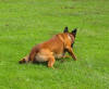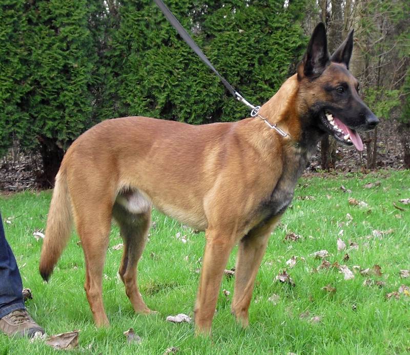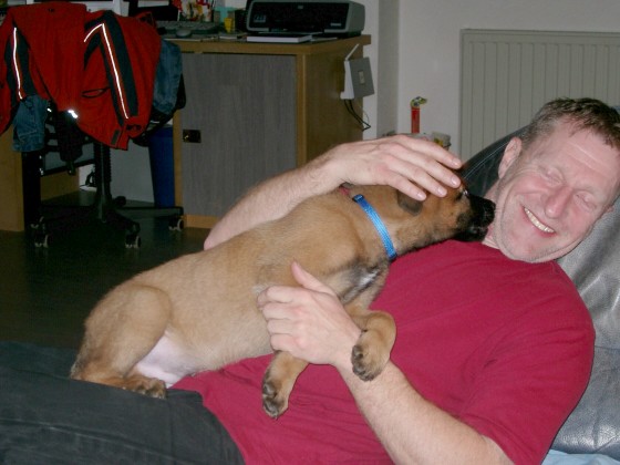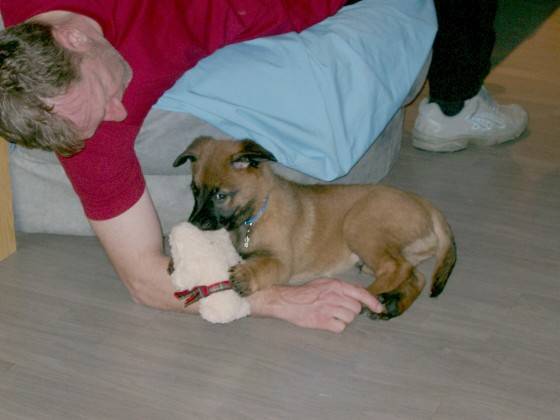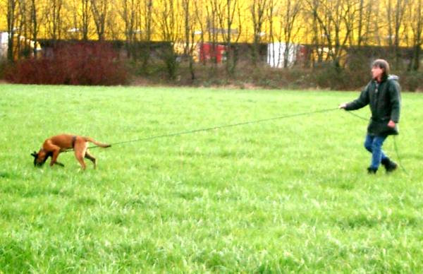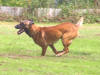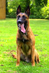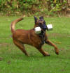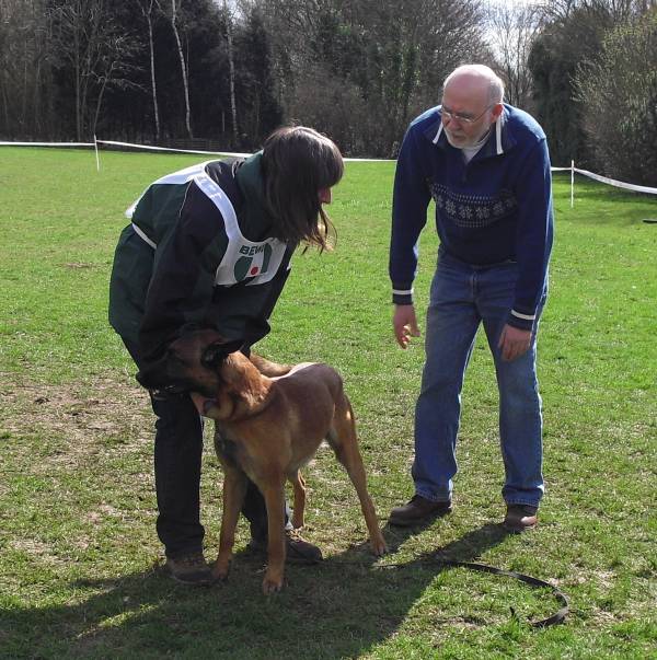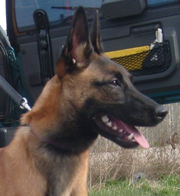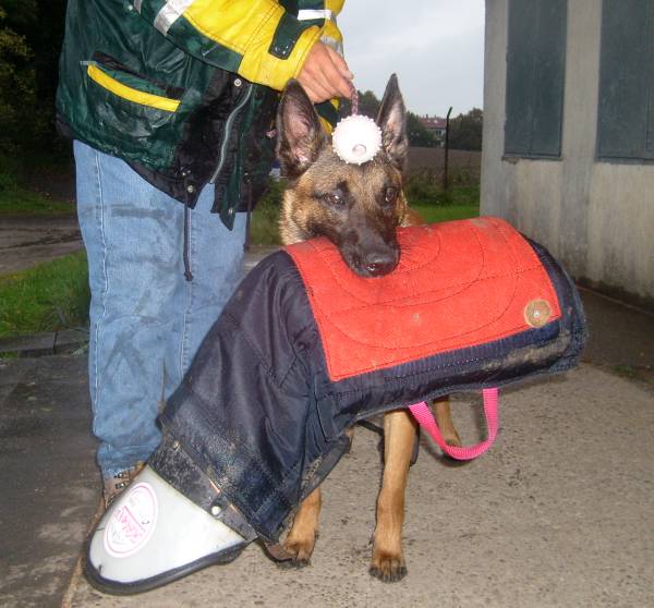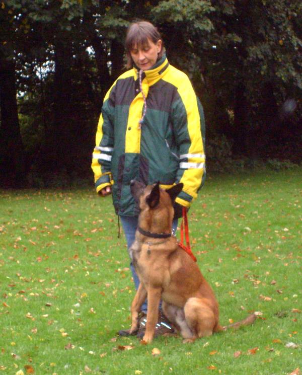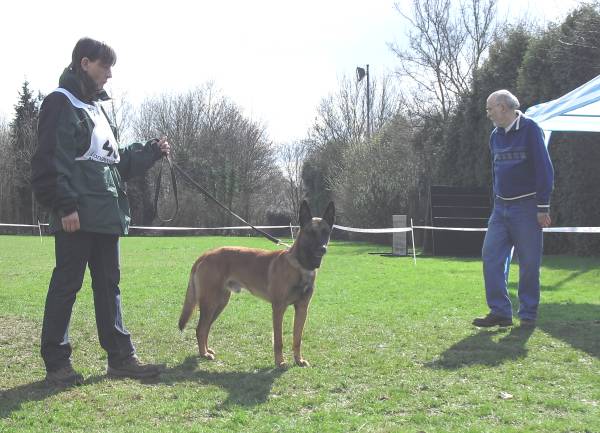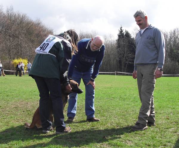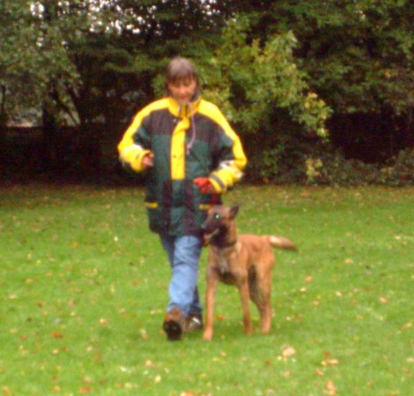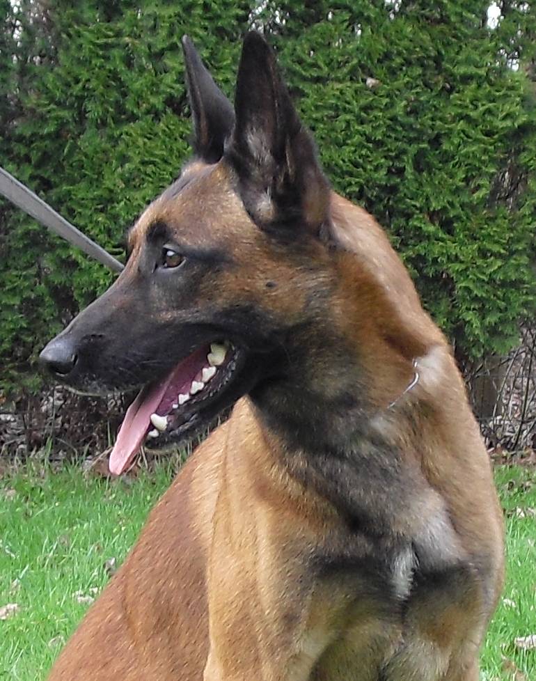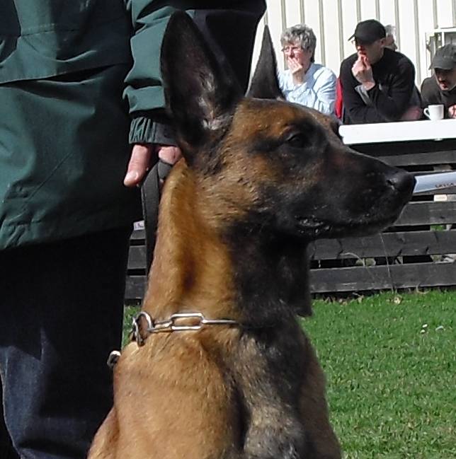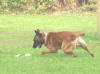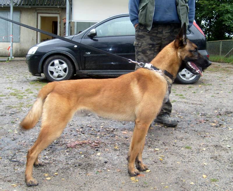 Brigant erhielt auf der Schau DMC in Düsseldorf Wersten ein Sehr gut ! Schaubericht : 2 1/2 jähriger Rüde mit knappen Scherengebiss, gute Kopflinien, guter Stop, mittelbraune Augen, schräg eingesetzt, mandelförmig, schöne flache Backen, schöne Halsnackenlinie, der Rüde ist leicht überbaut, Brustbreite und -tiefe korrekt, gute Winkelungen vorne und hinten, korrekter Stand, in der Bewegung gut ausgreifend mit Schub. Düsseldorf/NRW 27. März 2010 Richter Alfred Klapproth Wir gratulieren ihm und seiner Hundeführerin Ulla Hagen ganz herzlich und möchten Euch bei dieser Gelegenheit ein ganz liebes Dankeschön schicken! Brigant ist sehr frei und umgänglich, er zeigt sich ausgesprochen selbstsicher und freundlich. Anatomisch ist er sehr derbe und muskulös und besitzt eine wunderschöne, dunkelrote Farbe. Brigant ist ein sehr temperament- und drangvoller Hund mit der gehörigen Portion "Krabbeligkeit" die sich für einen guten Mali eben gehört, lässt sich aber von seiner Hundeführerin sehr gut leiten und zeigt sich auch im Ring nicht überdreht oder nervig sondern präsentiert sich absolut selbstsicher und frei. Wir finden Brigant ist optisch sowie auch wesenstechnisch ein ganz toller Hund! Wir bedanken uns ganz herzlich für eine ganz hervorragende Sozialisierung und Ausbildung des jungen Rüden, die leider noch lange nicht bei jedem Welpenkäufer die Regel ist. Ihr beide macht das ganz prima und seid ein tolles Team ! Wir freuen uns schon darauf, Euch zur VPG 1 wieder besuchen zu dürfen!