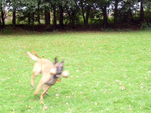 Brigant in Action! Man sieht Brigant hat ordentlich "Feuer"! Wir freuen uns sehr, dass er in so gute Hände gekommen ist! Frauchen und er sind ein ganz super tolles Team ! Vielen Dank für die klasse Fotos und für eine tolle Welpenaufzucht und Prägung von Brigant!