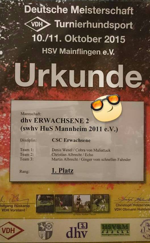 belegte mit ihrem Hundeführer Dennis Wesel auf der DHV Deutschen