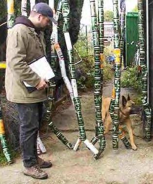 Suche nach dem Hundeführer. Hier musste Bijou durch einen Dosenvorhang