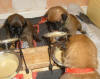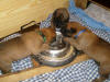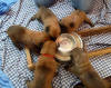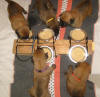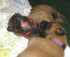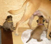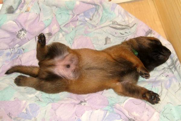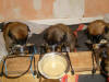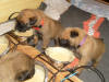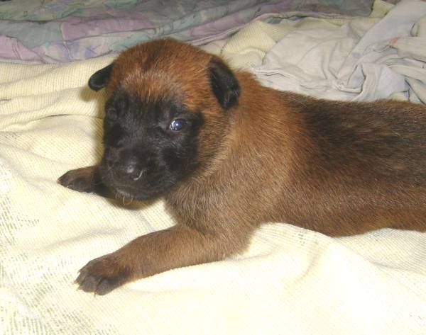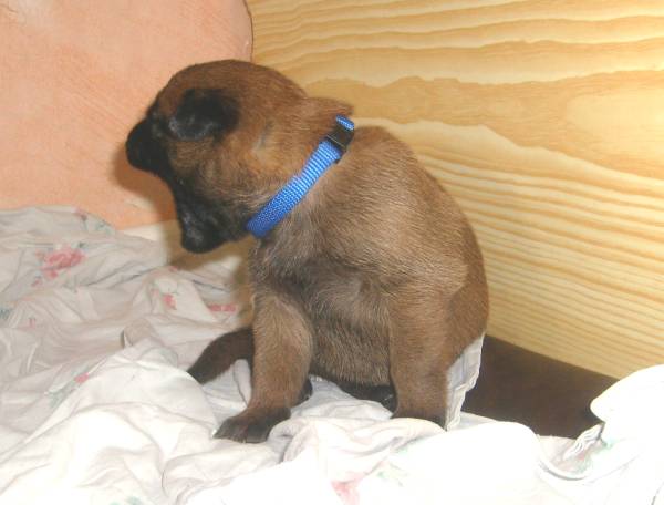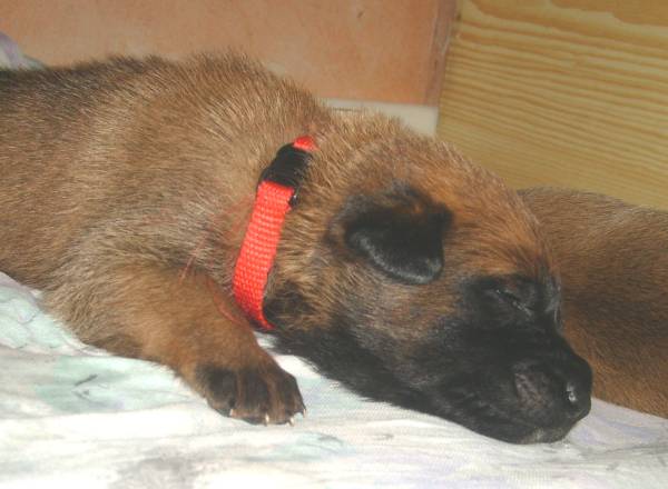 Heute haben alle kleinen Maliattacks ihre erste Wurmkur bekommen! Der Züchter war lernfähig und hat diesmal ein anderes Präparat gewählt. Dieses braucht man nur einmalig zu verabreichen und geschmeckt hat es wohl auch viel besser, als bei den B´s. Jetzt sind alle zufrieden und nuckeln wieder bei Mama. Essensschlacht!! Heute haben wir das erste Mal Futter angeboten. Bijou hat sich vorher eine kurze Auszeit genommen und alle Welpis haben friedlich geschlafen. Als der Futternapf abgestellt wurde, war Mr. grün sofort auf den Weg zur Schüssel und er hat sofort gefressen wie ein Mähdrescher!! Die anderen haben auch gleich nachgezogen und Fräulein gelb hat gleich Besitzansprüche an die gesamte Futterportion gestellt! Anschließend konnte man dann noch kleine Reste als Nachtisch aus dem Pelz seiner Geschwisterchen putzen. Für Mama blieb nichts übrig! Sie hat natürlich ihre Extraportion bekommen und danach durften die kleinen Maliattacks auch noch einen Schluck aus der Milchbar trinken. Weil die erste Fütterung gleich in einer Essensschlacht endete, haben wir uns dafür entschieden, jedem kleinen Möchte-gern-mali ein eigenes Näpfchen zukommen zu lassen. So wurde zumindest nicht mehr im Essen herumgetrampelt. Geschmeckt hat es aber trotzdem. Nach dieser Fütterung sind die Welpen mit kugelrunden Bäuchen gleich ins "Koma" gefallen! Vielleicht müssen wir die Menge etwas zurücknehmen, aber allen geht es jetzt wieder prächtig und über Mamas Milchbar wurde auch schon wieder hergefallen! Die ersten Fütterungen sind immer etwas ganz Tolles!! Ok, ich weiss ja nicht was in dem Welpenfutter so drin war, aber seit heute morgen lassen die kleinen Rabauken so richtig "den Kasper raushängen"! Es wird gespielt was das Zeug hält. Auch wenn man beim Laufen immer mal wieder umkippt und auch schon mal der ein oder andere Schnapper daneben geht, wird jede wache Minute jetzt mit raufen ausgenutzt. Naja, wir sind ja noch keine 3 Wochen alt, natürlich wird danach ausgiebig geschlafen und so wirklich lange halten wir auch noch nicht durch, aber es ist schon deutlich erkennbar, dass wir mal richtige Malis werden wollen! Eine aufregende Woche geht zu Ende. Die Kleinen sind jetzt schon 3 Wochen alt! Ihre Entwicklung geht schnell voran. Bei allen kleinen Maliattacks sprießen jetzt die ersten Zähnchen, auf dass sie demnächst auch schön die Bude anknabbern können. :) Die ersten Fütterungen wurden gerne angenommen, auch wenn man dem ein oder anderen noch ab und zu den richtigen Weg zeigen muss, fressen alle gern ihren Babybrei und vertragen die zusätzliche Futtergabe sehr gut. Wenn Mama die Box betritt ist das natürlich das Größte! Sie sind eben doch noch kleine Babys und Muttermilch ist immer das Beste Futtermittel überhaupt! Bijou verlässt jetzt ab und zu den Wurfraum und nimmt sich eine Auszeit, kümmert sich aber nach wie vor ganz hervorragend um ihren Nachwuchs. Die Welpen fangen an ihre Umwelt zu erkunden und spielen mit Mama, ihren Geschwistern und nehmen auch schon hin und wieder Kontakt zu den anwesenden Zweibeinern auf. Nächste Woche werden wir auch mal ein paar Spielzeuge anbieten. |