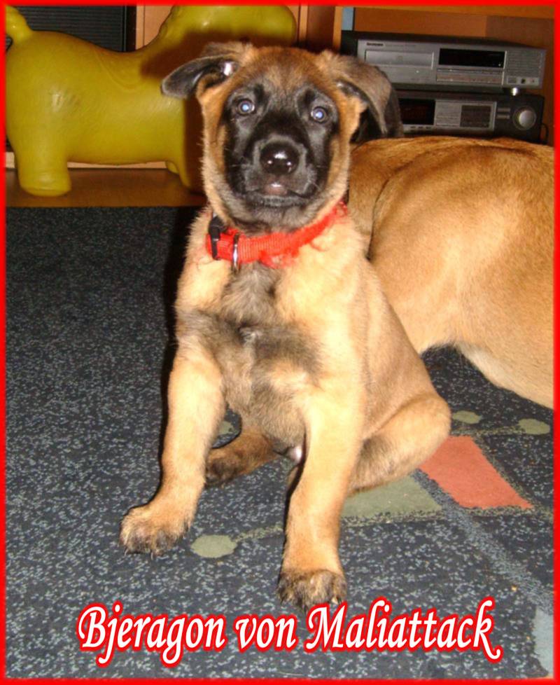 Der B-Wurf im neuen Zuhause (Anthrax vom Zabelstein x Bijou avec esprit, WT 12.10.07) Auf dieser Seite findet Ihr Infos und Ausbildungsstand unseres B-Wurfes. Auch diese Seite lebt natürlich vom Mitmachen! Also schickt mir fleißig Fotos oder Videomaterial Eurer kleinen Maliattacks! Wir freuen uns über jede noch so kleine Nachricht ! Infos zu den einzelnen Hunden bekommt Ihr, beim anklicken des jeweiligen Baby-Fotos! Der aktuelle Ausbildungsstand wird
